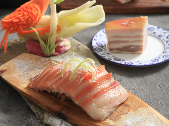 一条火腿的成熟,需要经历漫长的过程,成熟的火腿表面覆盖着一层绿色的霉毛,这时用骨签在不同部位‘试针’ 抽针而嗅,三针清香即不合格的火腿,一年为新腿,两年称为老腿,要到第三年,一条营养丰富口感密实的火腿才算‘发育’完成,可以品尝这份得之不易的美味了,如果再等上两年便可切片生吃,五年的腿,鲜,香,酥,嫩,入口销魂,徽州火腿蒸,炒,煎,烤,能屈能伸的百样滋味。