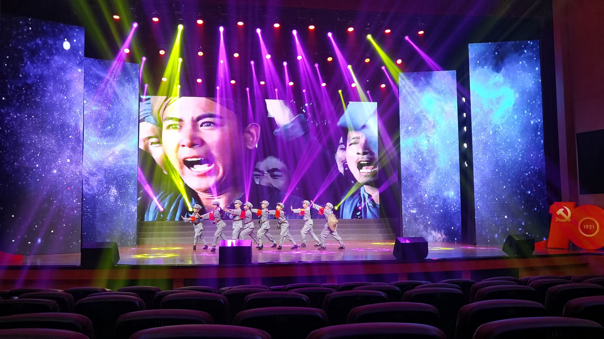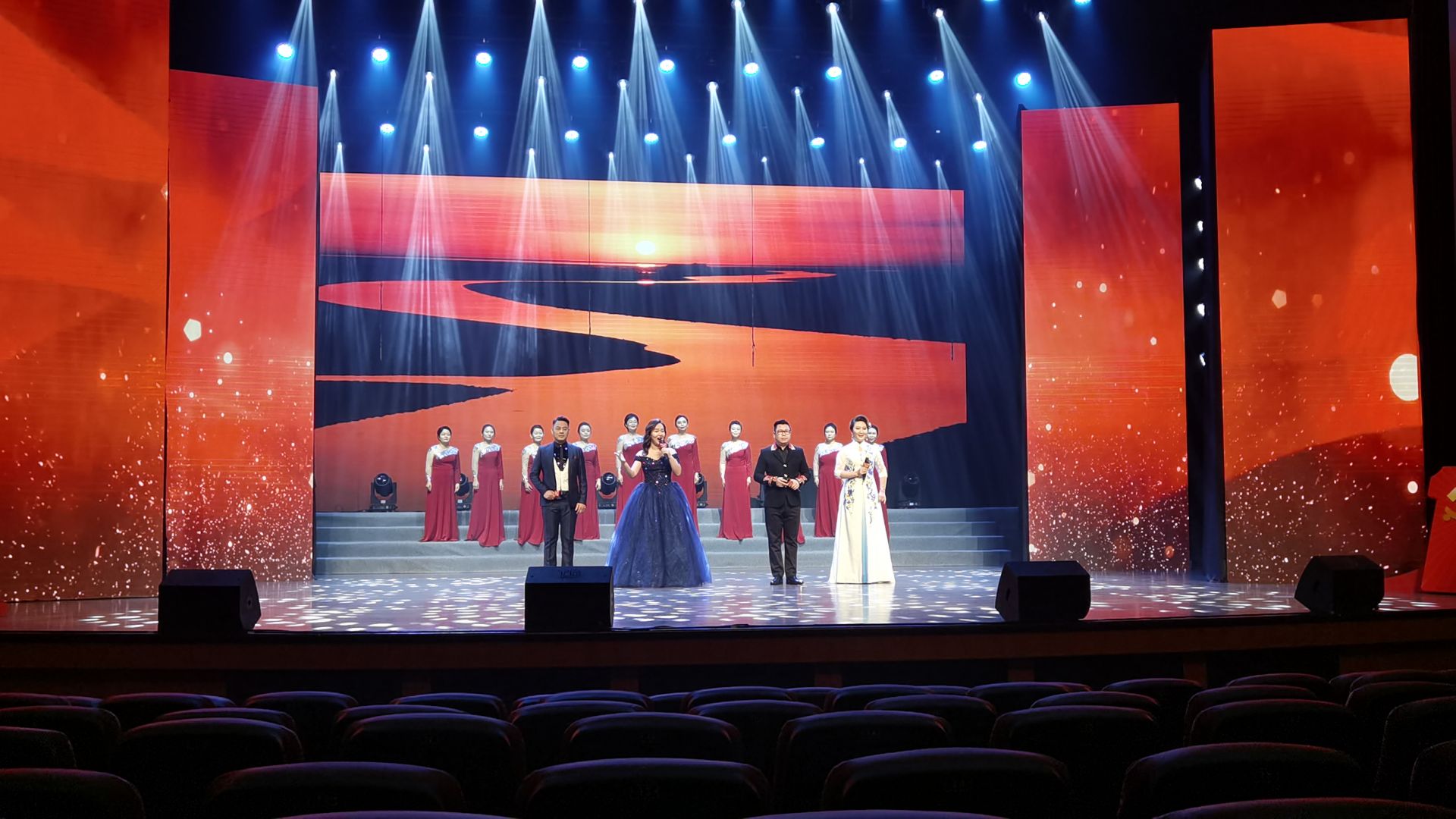 整场演出在一曲《唱支山歌给党听》中拉开序幕,由少儿合唱团、青春合唱团带来的《我的祖国》瞬间点燃全场,台下观众纷纷自发合唱;女声小组唱《映山红》《情深意长》《南泥湾》再现了中国共产党艰苦奋斗、自力更生的峥嵘岁月;女声独唱《毛主席的话儿记心上》、儿童表演唱《红星歌》、男声独唱《红星照我去战斗》、男声小组唱《保卫黄河》《地道战》《弹起我心爱的土琵琶》《游击队歌》等曲目,用歌声生动诠释共产党人坚定信念、勇往向前和大无畏的战斗精神;《在希望的田野上》《让我们荡起双桨》《春天的故事》《革命人永远是年轻》《咱们工人有力量》《我们走在大路上》《少年》《最美的歌儿唱给妈妈》《江山》等一首首经典的旋律,唱出了对党和祖国的深情厚意,真切表达了对中国共产党百年华诞的祝福和对祖国的热爱。