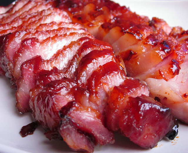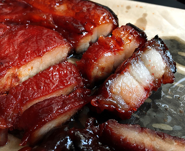 刚出炉的叉烧,滴着琥珀色的麦芽糖汁。阳光透过玻璃橱窗,把通红带点焦的叉烧照得闪闪发亮,再看一眼就要饿晕。于是赶紧落单,叫烧味佬斩料:唔该,半斤叉烧,半肥瘦,要燶一点的!