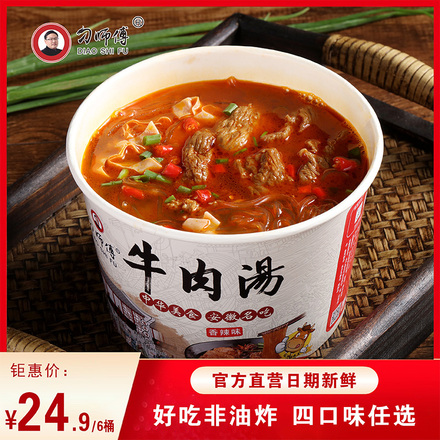8.0¥YTzdXtEN30l¥ https://m.tb.cn/h.f4qM5IO 刁师傅淮南牛肉汤105gX6桶装粉丝速食安徽泡面方便面零食充饥夜宵
