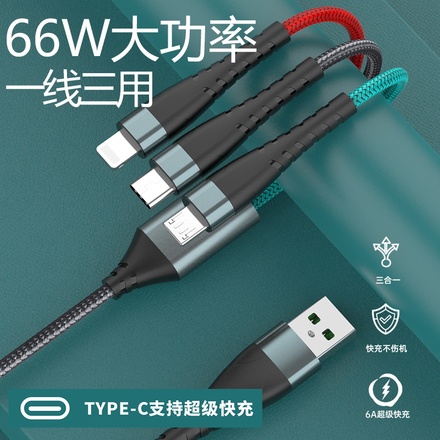 8¥b6yxXtEbPJx¥ https://m.tb.cn/h.fUnRuZb 纪米 数据线一拖三多功能苹果华为安卓type-C通用66W超级快充电器