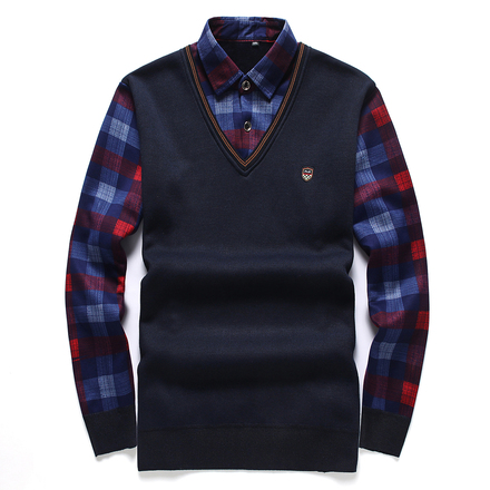加绒毛衣假两件爸爸衬衣