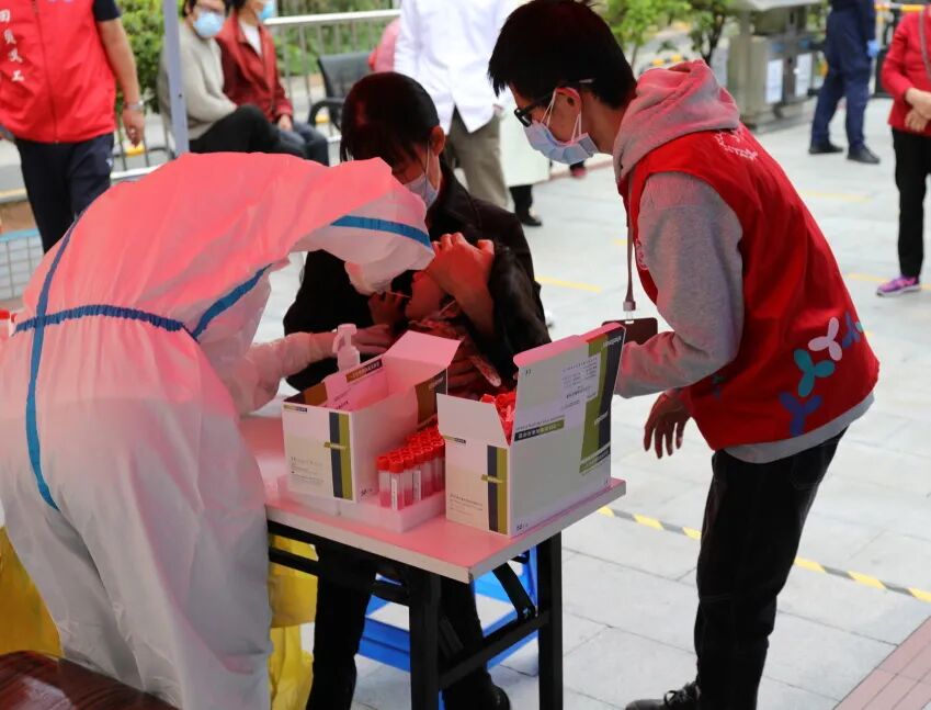 “来,嘴张大……”迅速手消毒撕开棉签、采样、样本放入试管“好了,快带上口罩”这样的话语和动作医护工作人员要重复不知多少次