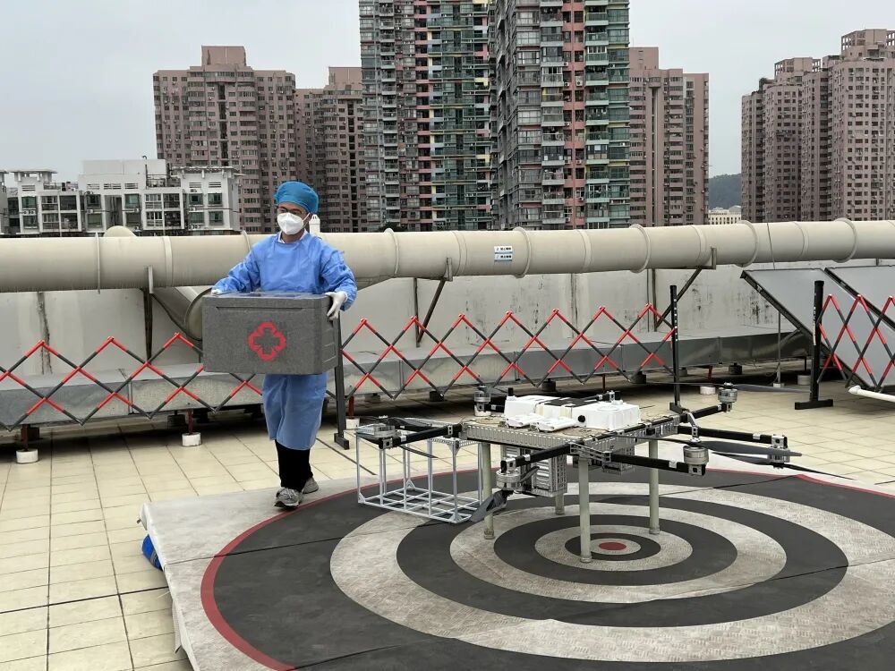 1月10日下午,罗湖医院集团用无人机将莲塘区域的核酸检测标本运送至罗湖医院集团医学检验中心。