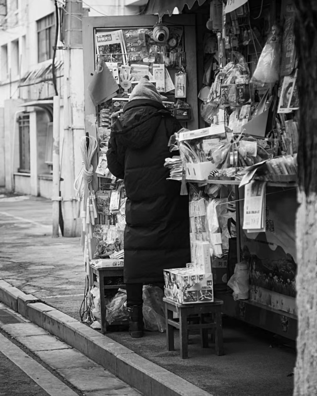 这是一家再普通不过的报亭,老板是个衣着朴素、总是一副没怎么睡醒似的中年男人。一辆很旧但总是擦的很干净的电瓶车、一张小折叠桌和几个小马扎,是这间报刊亭之外的常规配置。这里是俞奶奶和一众老街坊们时常聚集的场所,家长里短之余,偶尔还会站在打扑克或者下象棋的人群边上“观战”一会儿。