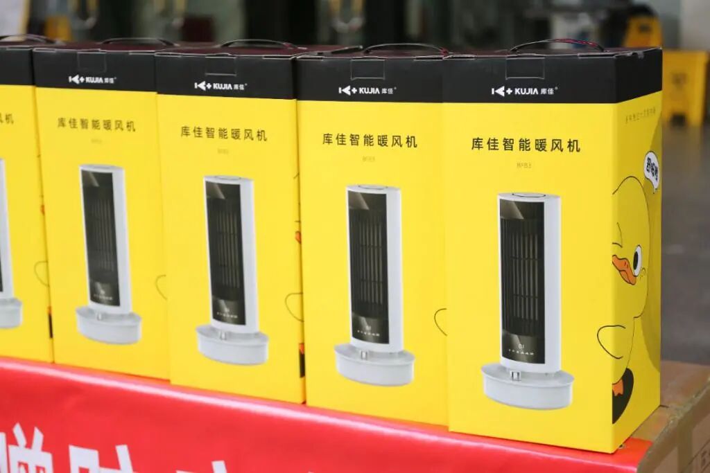 该公司赠送了 50 台库佳智能暖风机,机身小巧智能,可实现多种档位大面积供暖。
