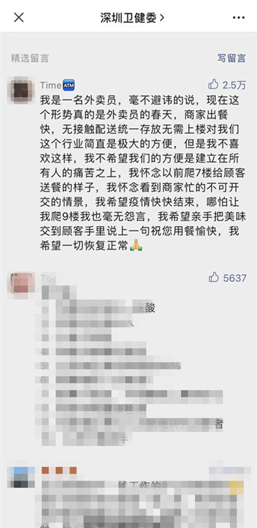 3月12日上午,深圳卫健委公号下一位外卖小哥的留言冲上热一,几个小时内点赞数就达到近三万。