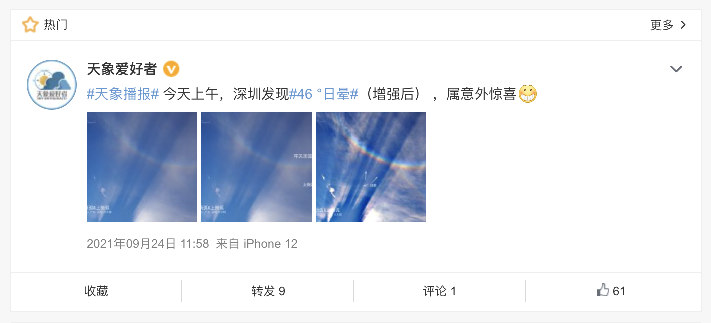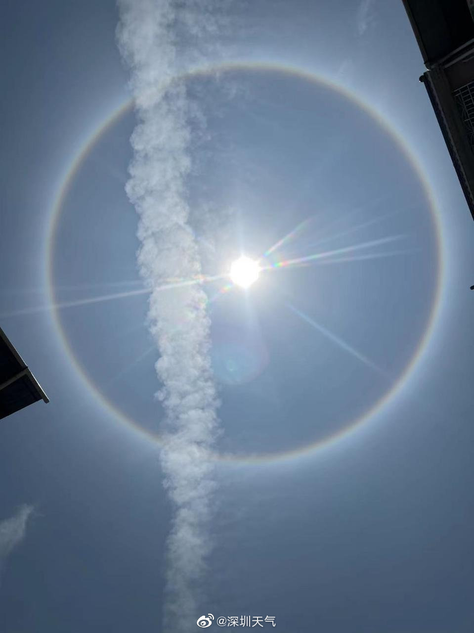 节后上班第一天,深圳不仅出现了日晕还有环地平弧