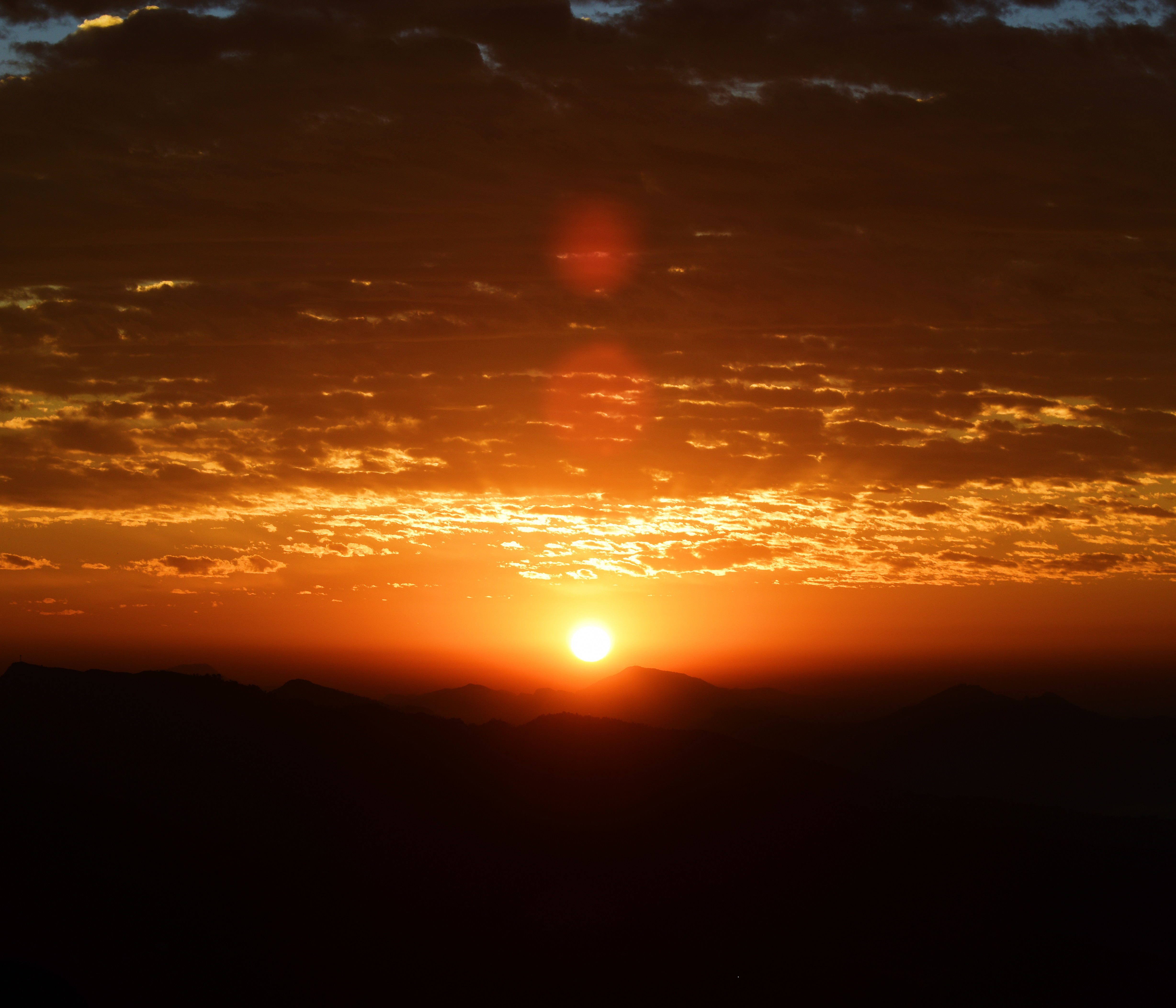 日出群山莽莽,划分白昼与黑夜一个起始,火烧云长空列阵,这一个大气磅礴,美哉!