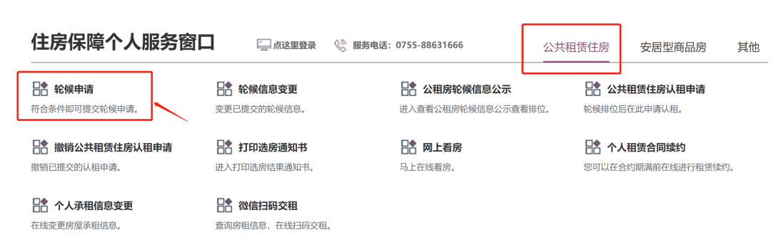 进入后,点击【公共租赁住房】处的【轮候申请】,然后登录,点击【申请轮候】