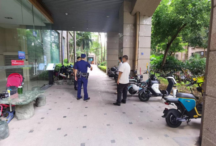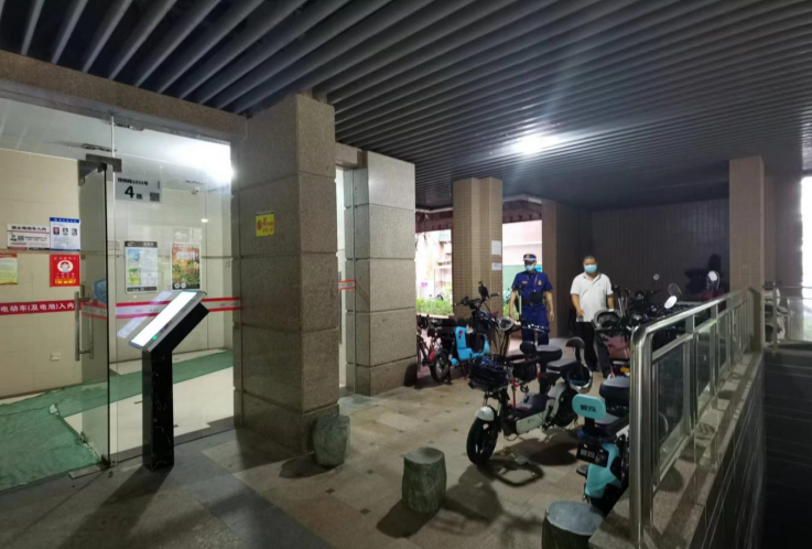 该小区存在电动自行车违规停放在建筑物的公共门厅、疏散通道、安全出口的行为。