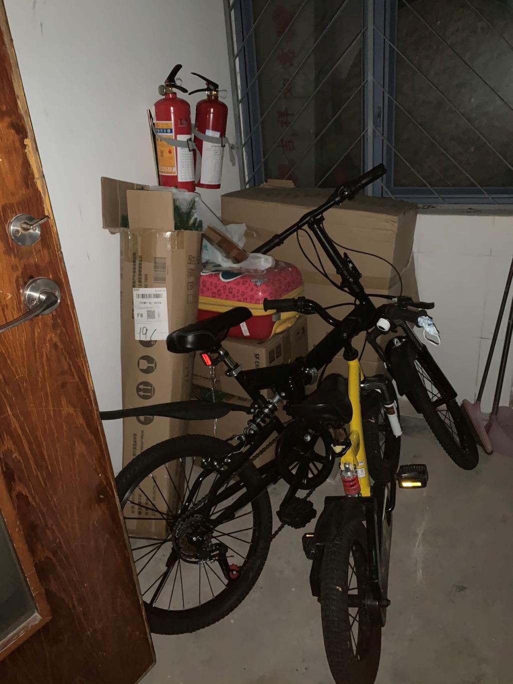 存在隐患:疏散楼梯间内摆放单车等杂物。