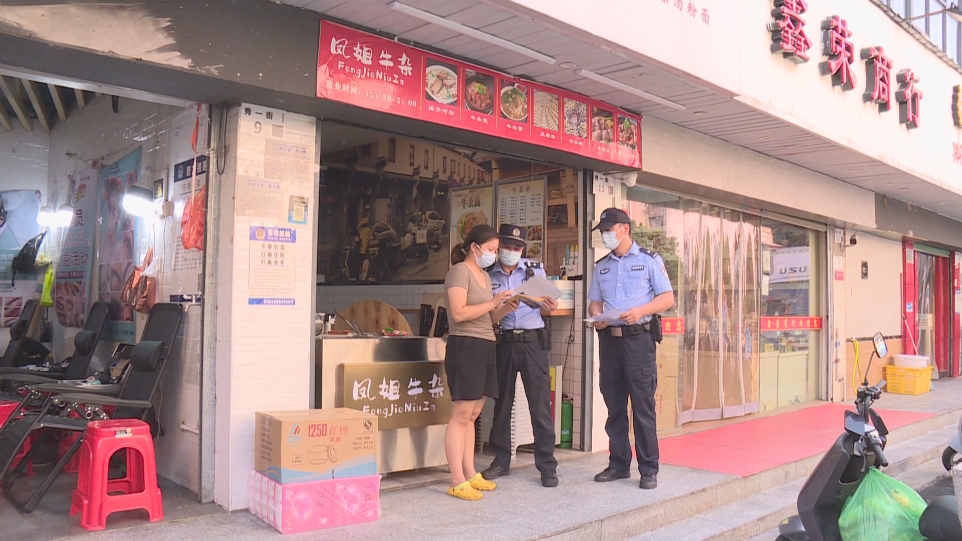 模拟演练结束以后,刘锋又来到辖区的沿街商铺开展反诈宣传。针对易受骗人群特点,讲解各类电信诈骗案例,揭露诈骗分子作案伎俩。同时,还提醒辖区群众安装“国家反诈中心”APP。