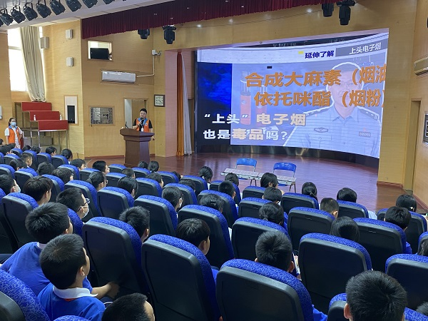除此之外,翠竹街道禁毒办联合深圳市东湖中学为初一年级新生开展了青春不“毒”行,拒绝“上头电子烟”——禁毒知识讲座,超300名师生参与了本次讲座。