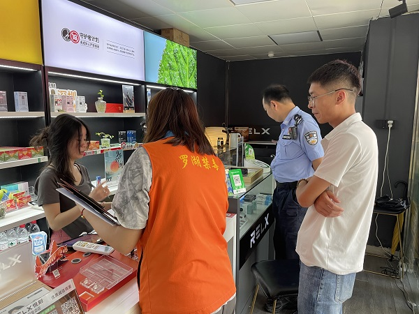 排查电子烟生产经营企业的经营许可证。通讯员供图