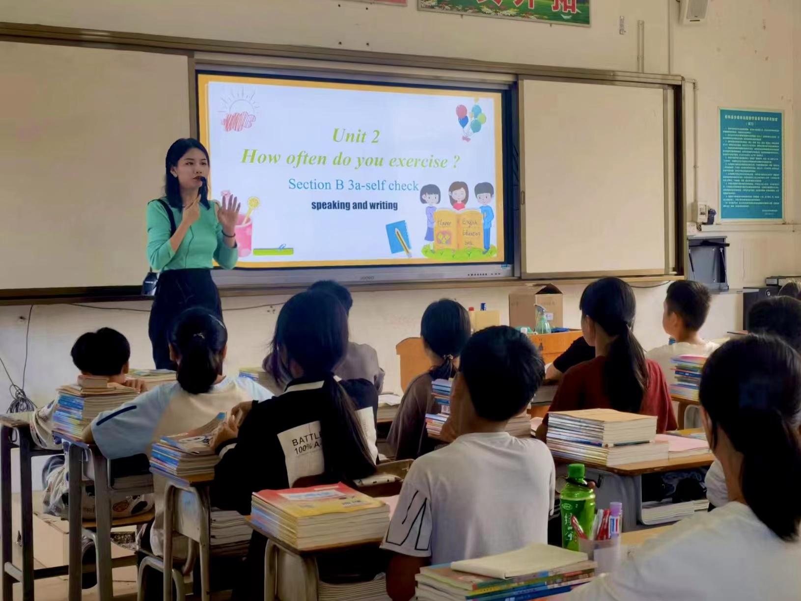 英语是那佐中学学生最薄弱的科目,温馨老师的英语写作课以让学生愿意开口说 、敢于动手写为出发点,从学情出发重构教学设计,以短语融合简单句型的方式,让学生开口去描述自己的日常生活,形成动口说、动笔写的有效课堂模式,课堂以学生自主思考、自主学习和小组合作的方式为主,很好地实现了培养思考能力、提升英语综合素养的教学目标。