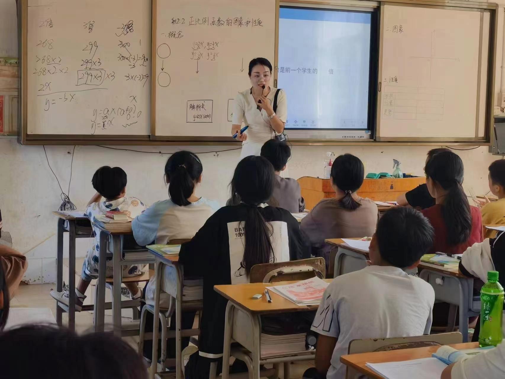 雷珊珊老师的数学课从报数游戏导入,提炼函数表达式共同特征,培养学生的抽象能力,逐步养成从数学的角度观察现实世界的意识和习惯。从函数解析式到画出函数图象,从观察函数图象到函数性质的总结,让学生经历观察--猜测--归纳概括,注重培养学生的思维品质和习惯。在评课中,老师们认为以报数游戏导入和结束,大大增加了课堂的趣味性,也大大提升了学生的课堂参与度。