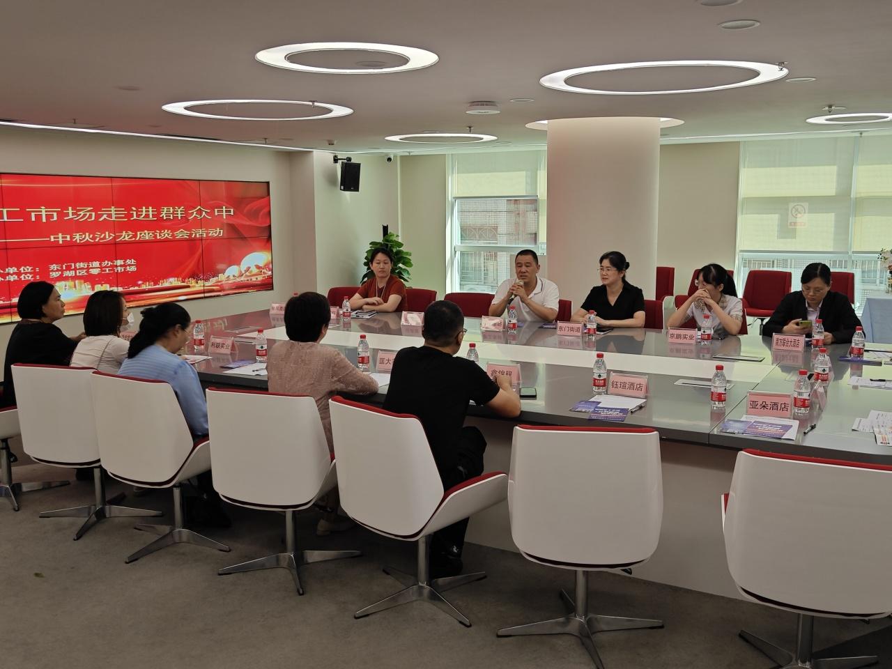 罗湖家园网讯:为深入推进疫情后酒店餐饮服务业等人力资源的大跨度调整,进一步加强对企业的支持,2023年9月26日东门街道企服部联合罗湖零工市场组织辖区有招聘需求的20余家规上企业举办“企业与零工市场走进群众中”主题中秋沙龙座谈会。