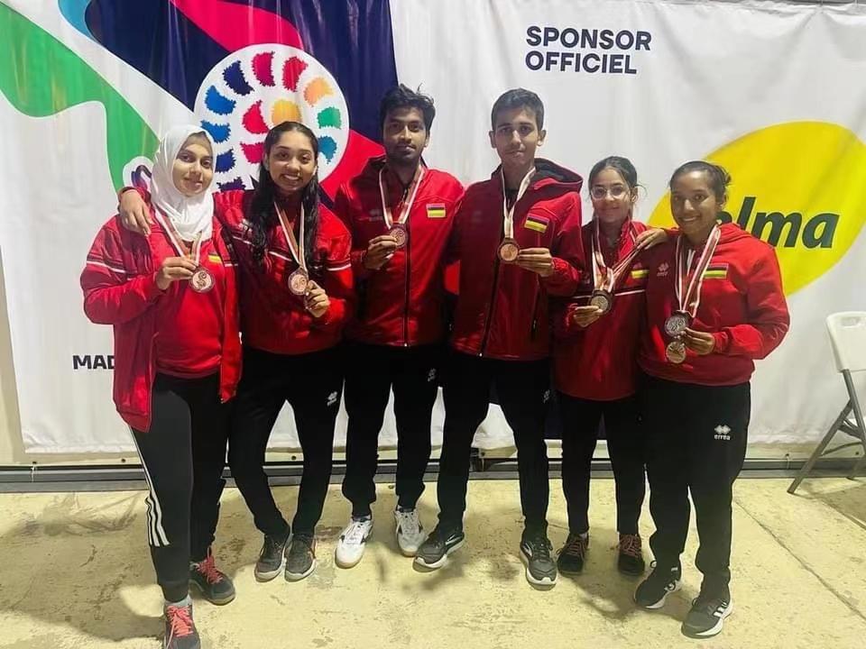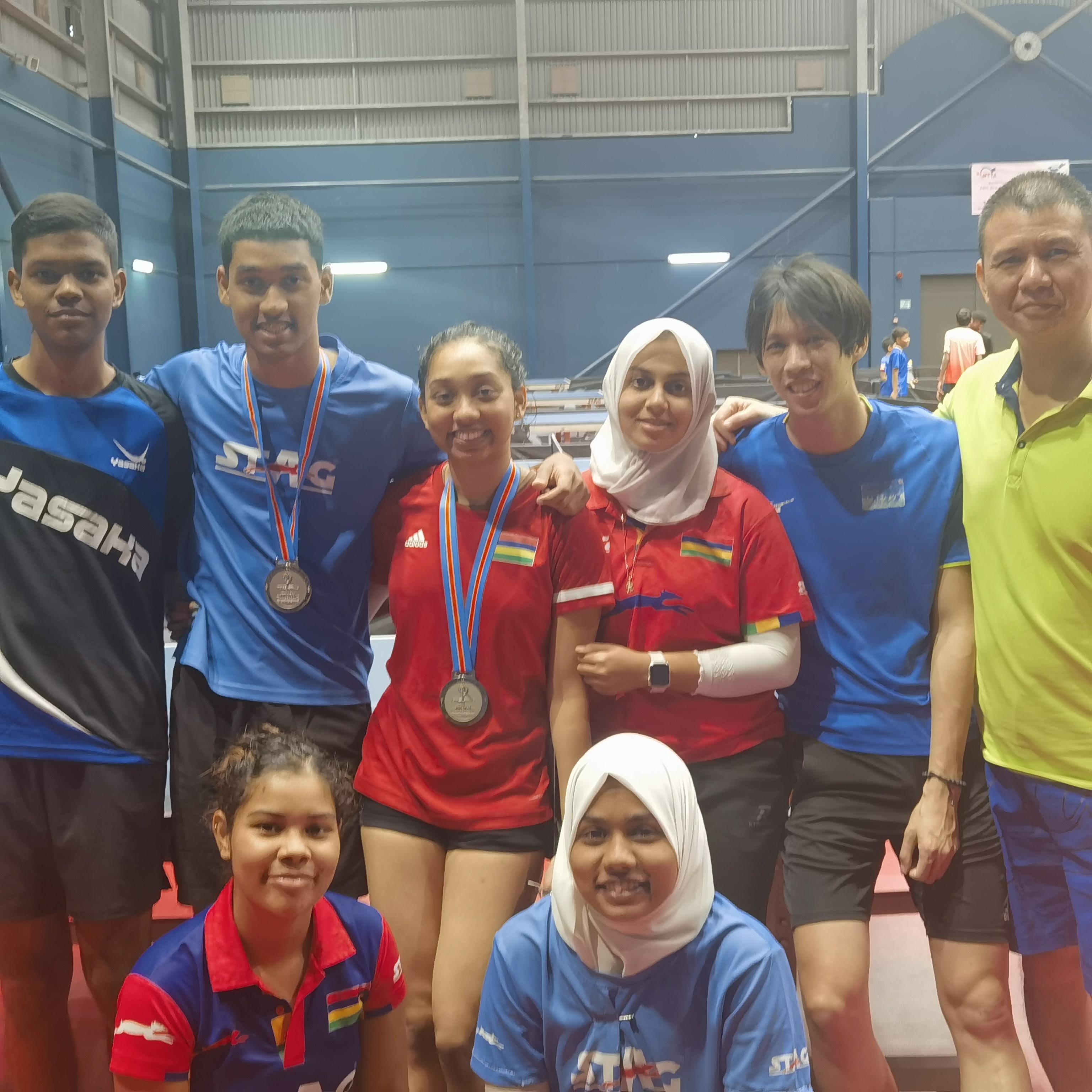 八月中旬,队员在第十一届印度洋岛国运动会乒乓球比赛中收获2银4铜