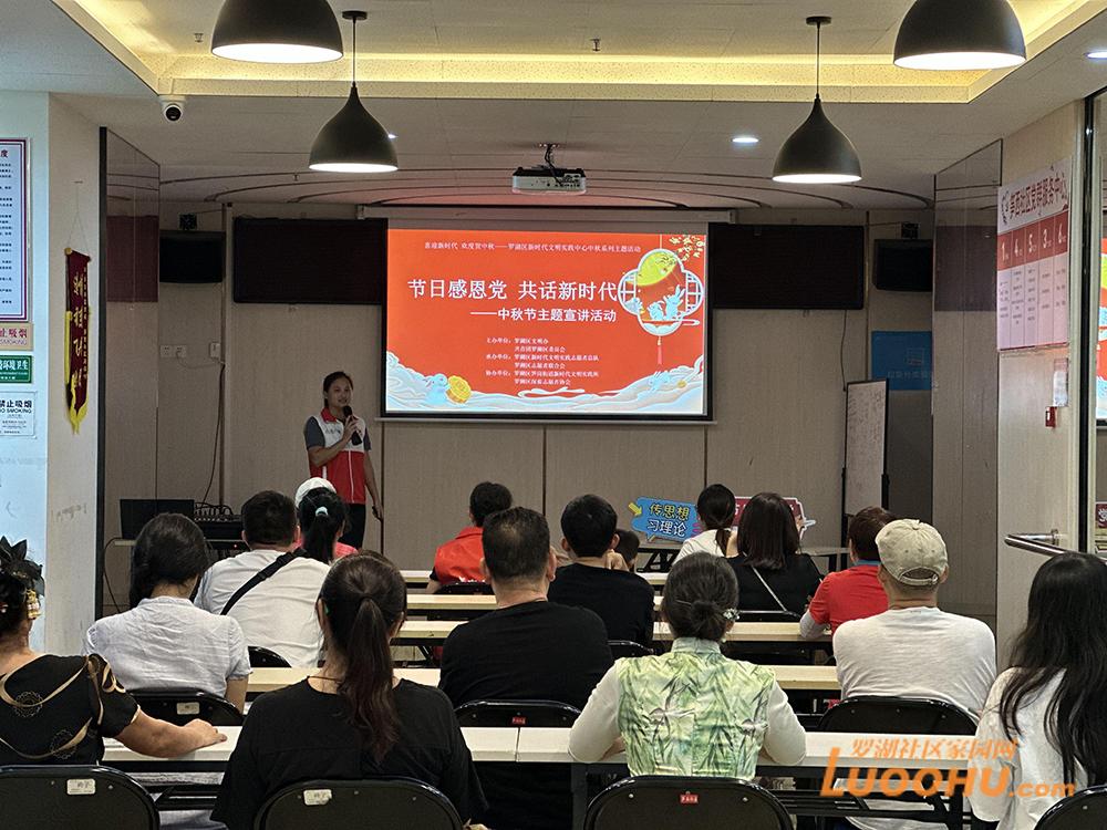 为彰显时代风采,继承和弘扬优良传统,推进新时代文明新风,罗湖区新时代文明实践中心开展“节日感党恩 共话新时代”主题宣讲和“品味中秋民俗,共赏佳节雅韵”中秋活动,共30余名市民参与其中。大家围坐在一起,互相交流身边变化、分享追梦故事,讴歌幸福生活、展望美好未来,随后以茶话会形式,把学习中秋习俗、经典诵读、共同品尝中秋美食、畅闲家常乐中秋传统风俗融入活动中,大家欢聚一堂,共庆中秋佳节,感受温馨团圆、其乐融融的节日氛围。