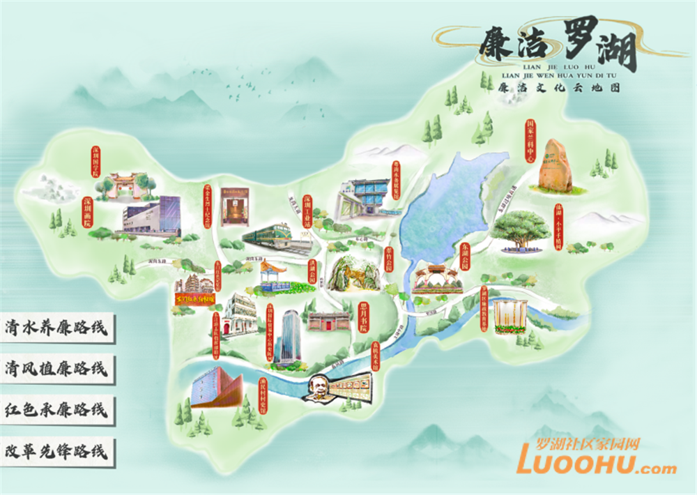 “以前提起廉洁都感觉比较抽象,现在不管我们是出门逛街还是活动锻炼,到处都能看到廉洁元素。”南湖街道渔民村的一位村民对廉洁文化建设的成果深有体会。罗湖区纪委监委整合文物古迹、红色遗迹、名人故居等本土资源,总结提炼蕴含其中的廉洁理念,推出“罗湖廉洁文化云地图”,打造16处清廉地标,形成4条廉洁文化走廊,并推出清廉地标打卡答题活动,引导市民群众实地探寻、感悟和传承廉洁文化,已经成为广大干部群众接受廉洁文化熏陶的重要阵地。推动开展“一街一品一特色”廉洁文化阵地建设,在洪湖、东湖、银湖、仙湖等生态公园融入廉洁元素,打造廉洁文化主题生态公园、社区廉洁书吧等一批多元廉洁文化阵地,实现群众“开门见廉”,进一步增强廉洁文化的辐射力、渗透力和感染力。