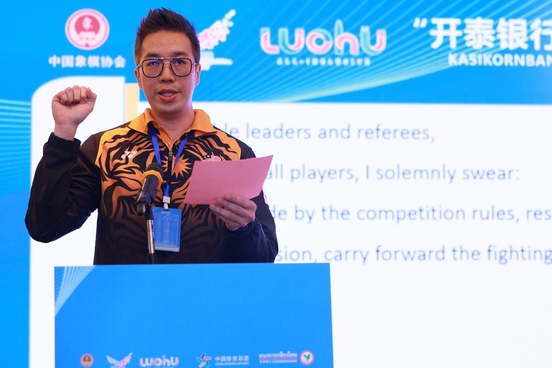 当日上午举行开幕式,国家体育总局棋牌运动管理中心副主任、中国棋院副院长郭玉军,中国和平发展基金会副秘书长刘振中,中国象棋协会副主席、深圳市文化广电旅游体育局一级调研员(市管)王志强,罗湖区副区长詹辉,开泰银行(中国)公司业务战略孵化总部总监杨彦钊,深圳市群众体育促进中心主任张文东,罗湖区文化广电旅游体育局局长马瑛,深圳市文化广电旅游体育局体育产业发展处副处长宋裴,亚洲象棋联合会秘书长林关浩,深圳市象棋协会会长曹阳,国家级裁判贺进等嘉宾出席。