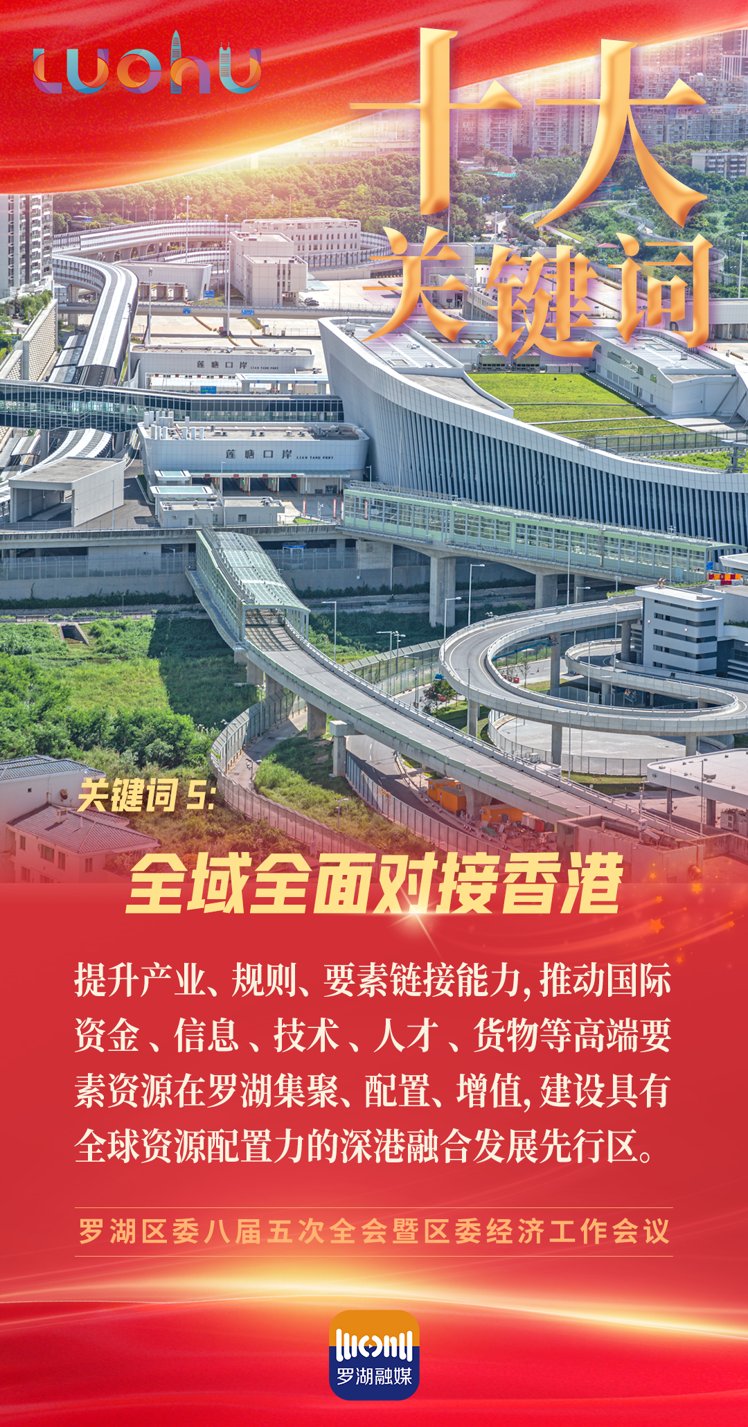 罗湖家园网讯:1月4日,中國共產黨深圳市羅湖區第八屆委員會第五次全體會議暨區委經濟工作會議召開。會議總結復盤了2023年度羅湖十件大事及高質量發展成果;推進「雙向奔赴」深港深度融合發展改革;在全面融入深圳「五個中心」建設,構建高質量發展新格局中,積極建設「具有全球資源配置力的深港融合發展先行區、具有世界潮流引領力的國際消費中心核心區、具有國際市場輻射力的現代服務業集聚示範區」產業發展目標,制定三個「三年行動方案」,抓住深港融合高質量發展的關鍵機遇節點,全域全面對接香港 ,「三力三區」建設取得新突破、新進展、新成績。