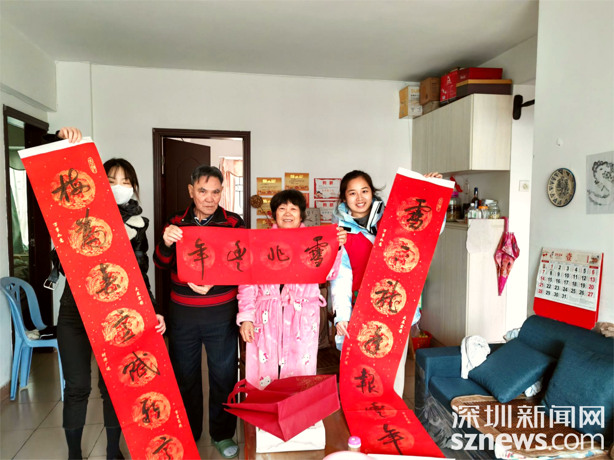 活动结束后,社工和志愿者还为困难家庭、孤寡老人送上春联,提前给他们送上节日的祝福,祝愿大家共同度过一个美满、幸福的春节。