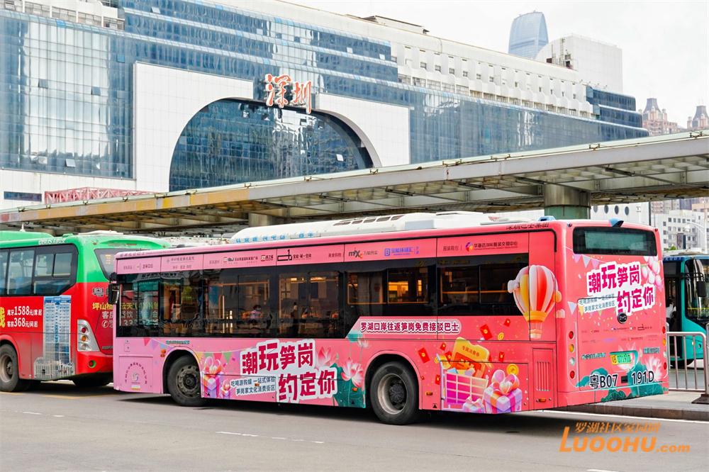 出地铁走到深圳火车站东广场公交候车点,抬眼便看到两张醒目的蓝色标示牌,指引着市民游客前往乘坐“笋岗家文化消费街区免费接驳巴士”,再往前走几步,两辆粉红色巴士正等候在公交停靠站点,车身的“潮玩笋岗约定你”标志十分醒目,不时还有从罗湖口岸通关来的市民前来咨询。走进车内,记者还发现车上摆放了“活力新消费,五月Bus Go(巴‘适’购)”消费指南和片区消费地图,让乘客快速掌握优惠信息。值得一提的是,每辆巴士都配有一名跟车志愿者进行路线地点播报,同时帮助游客快速了解线路信息。