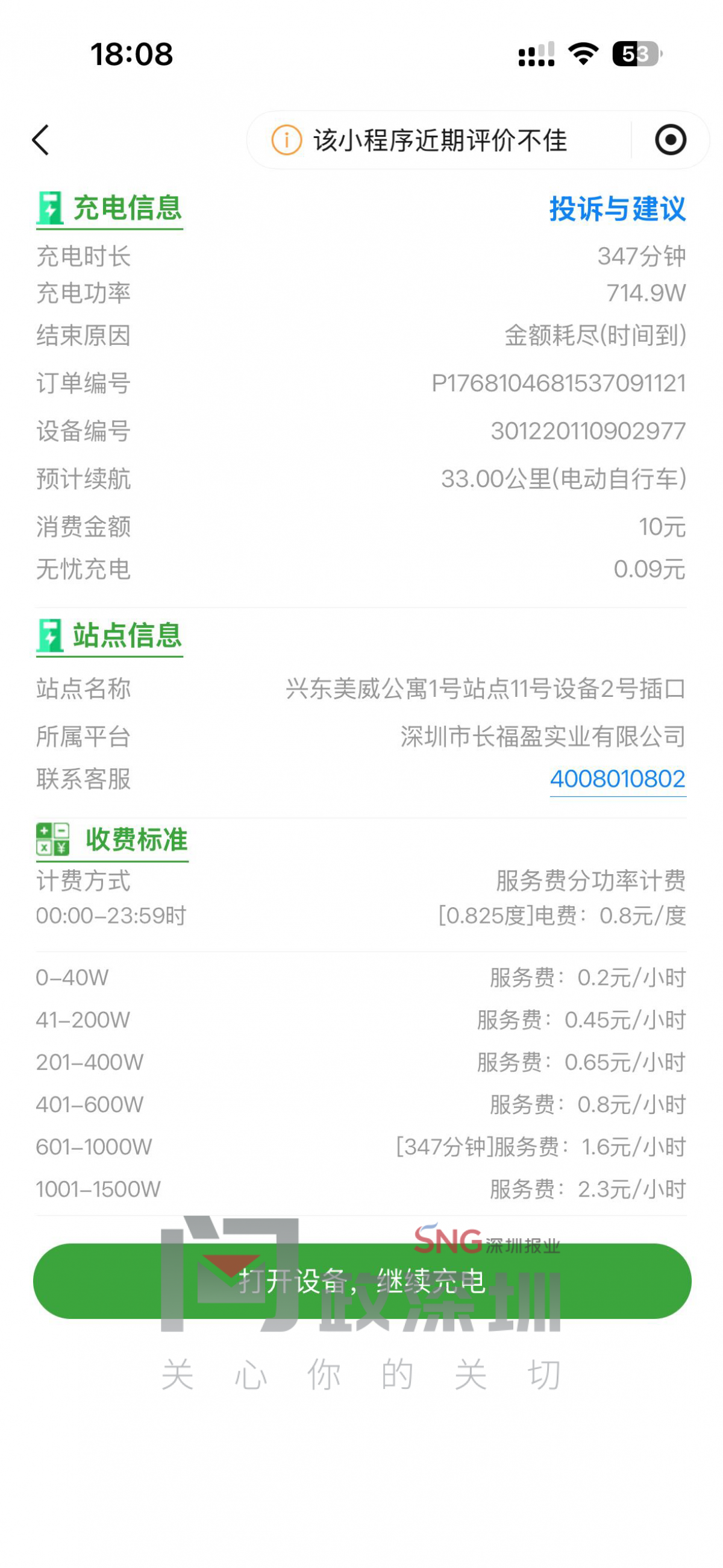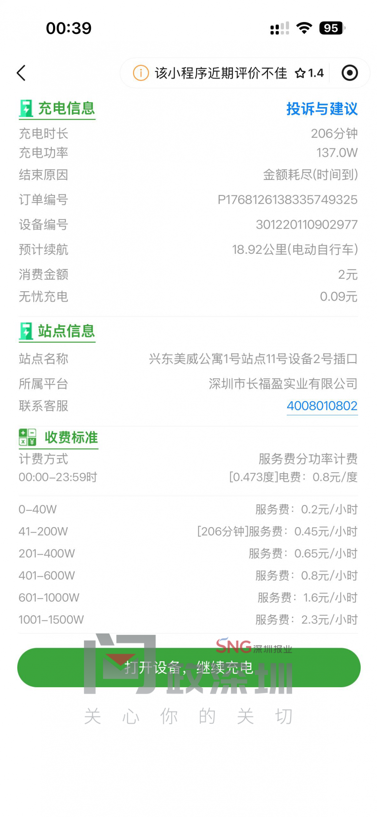 深圳的电瓶车充电桩不仅控制电流大小来延长充电时间还是虚电。就塔了个棚子还要收取超高额的服务费!我真的不知道提供了什么服务!电瓶车充电比汽车充电还贵得多!