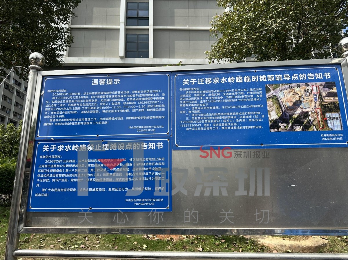 为进一步提升周边市容环境品质,改善交通出行条件,推动经营活动更加规范有序,经综合评估并征求部分摊贩意见,将该疏导点于2026年2月13日0时正式实施迁移至附近较为宽敞、规范区域。