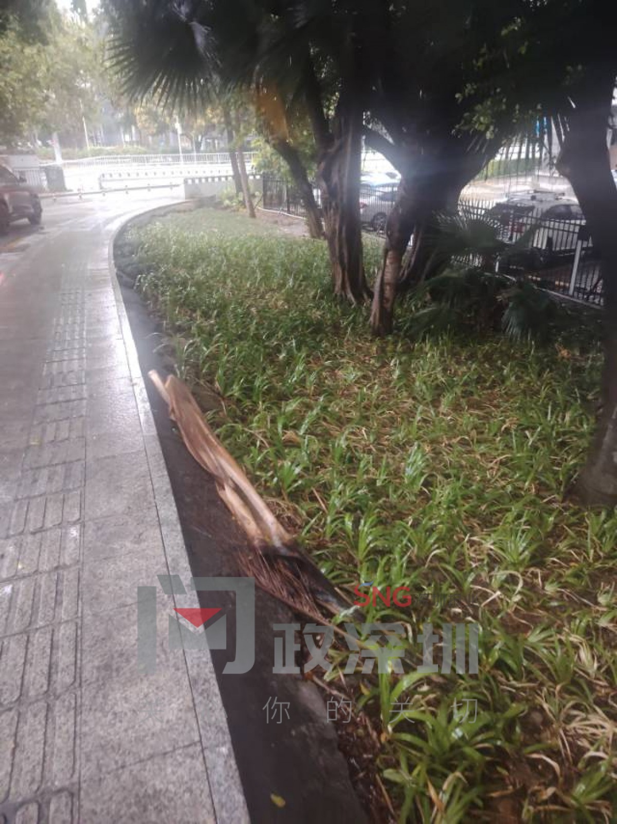 南山区深南科技立交东北侧的深南大道绿化带,里面丢了很多塑料垃圾,还有枯枝败叶。好久没有人清理了,希望管一管
