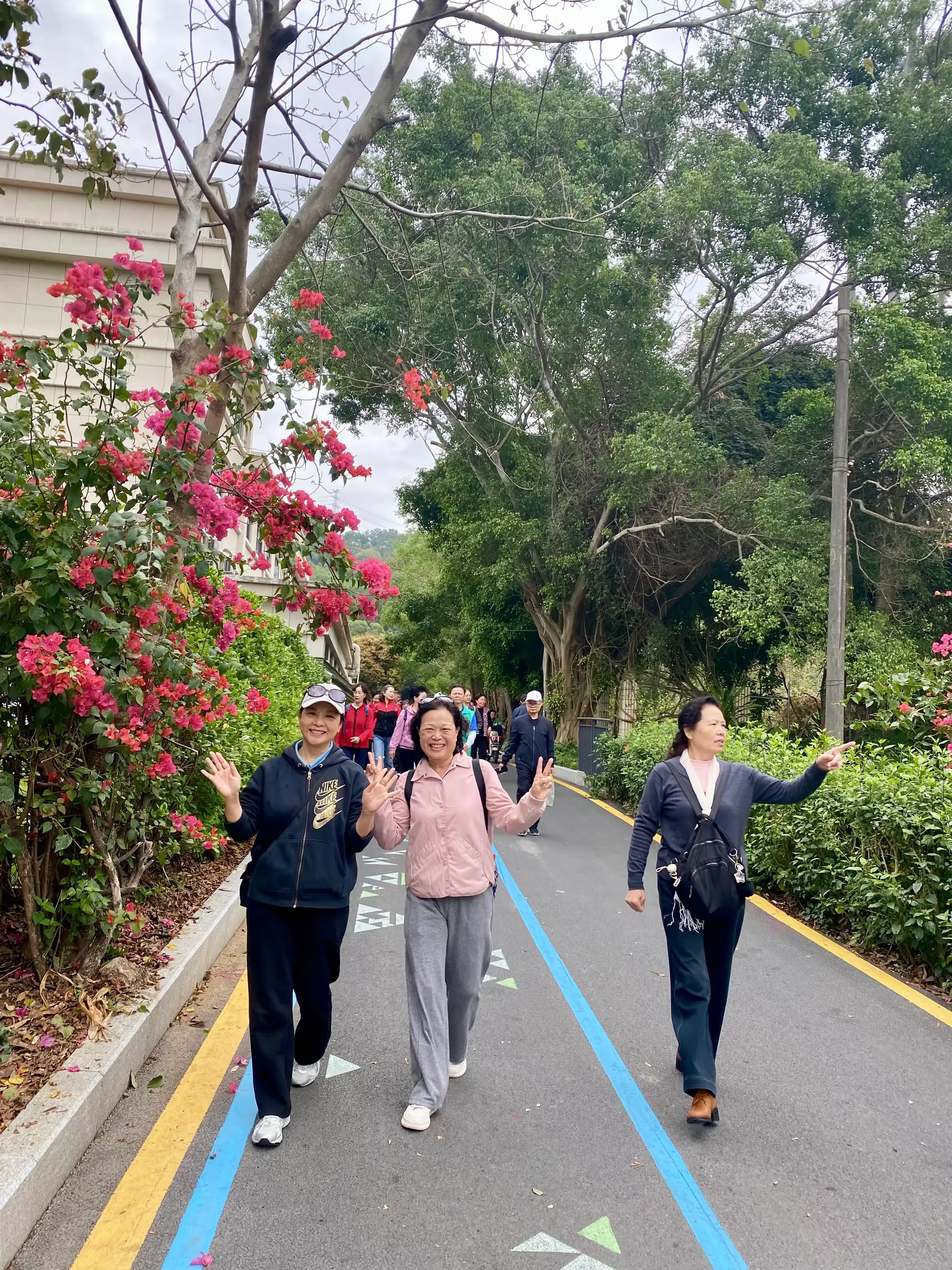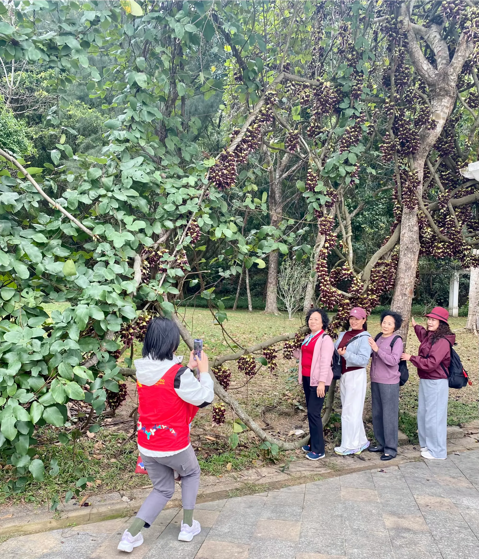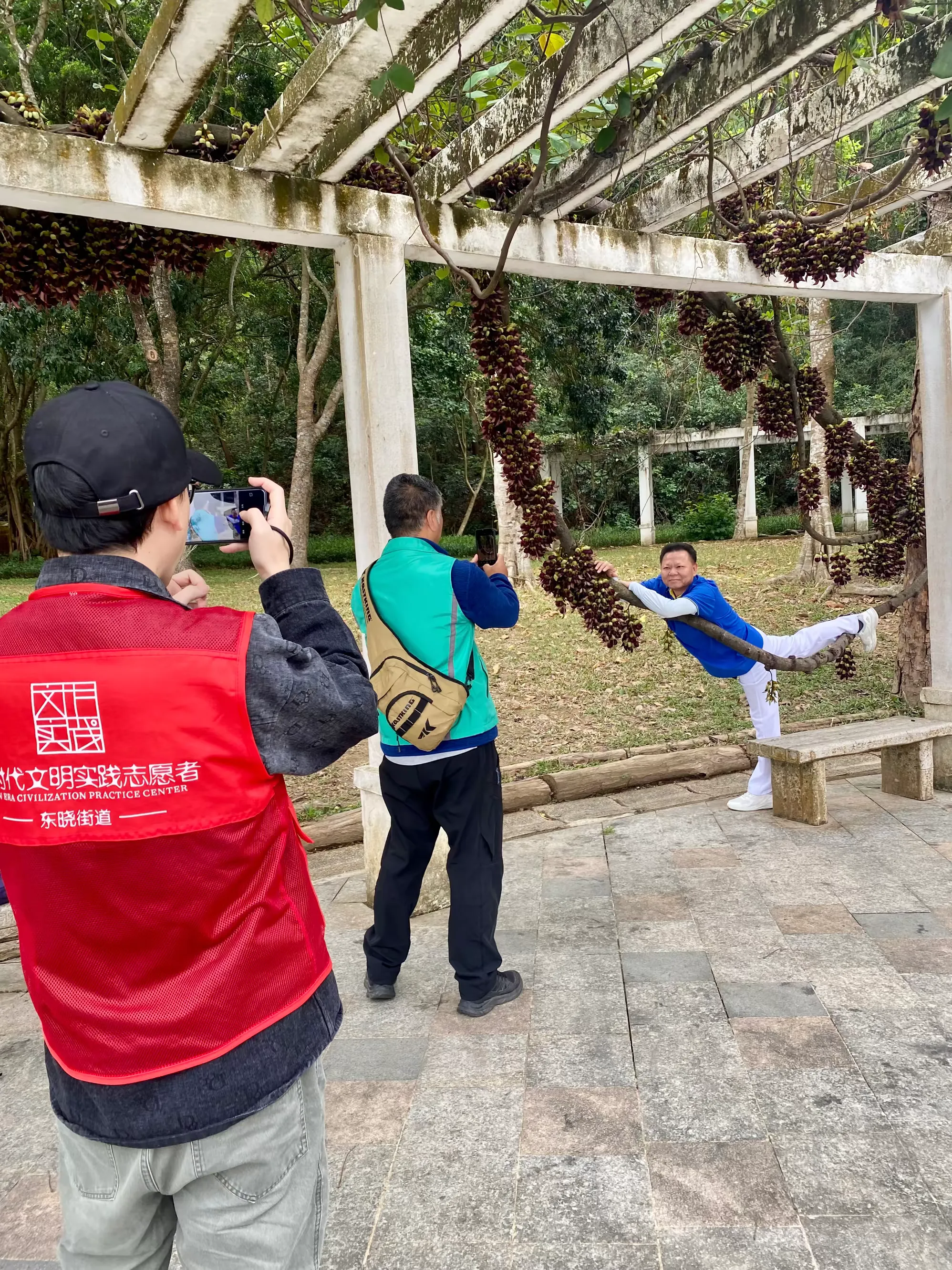 三月的风带着暖意,3月6日上午,由东晓社区党委、社区党群服务中心、东晓社区老年人协会组织的庆祝“三八”节活动,选在了开满禾雀花的东湖公园,姐妹们踏着春光赴约,一路笑声比枝头的鸟鸣还轻快。进了公园,远远就望见藤蔓间垂下来的禾雀花,一串串、一簇簇,紫的像霞,绿的似玉,胖乎乎的花瓣翘着小尖,真像一只只停在枝头的小麻雀,连翅膀上的纹路都清晰可见。“哎哟,这花长得真稀罕!”王阿姨掏出手机,拉着李姐站在花架下合影,“你看这颜色多鲜亮,比咱们年轻时穿的的确良还好看。”大家沿着花径慢慢走,有的仰头数着花串,有的凑近闻那淡淡的清香,不时指着某朵特别灵动的花互相打趣:“这只‘小麻雀’怕是想飞呢,你看它翅膀都支棱起来了。”阳光透过叶隙洒在她们银白的发丝上,和花影交叠成一幅温柔的画。累了就坐在石凳上歇脚,分享着带的小零食,说着家里的趣事。说春光只属于年轻人?这群历经岁月的老人,和盛开的禾雀花一样,在属于自己的节日里,绽放着从容又明媚的光彩。