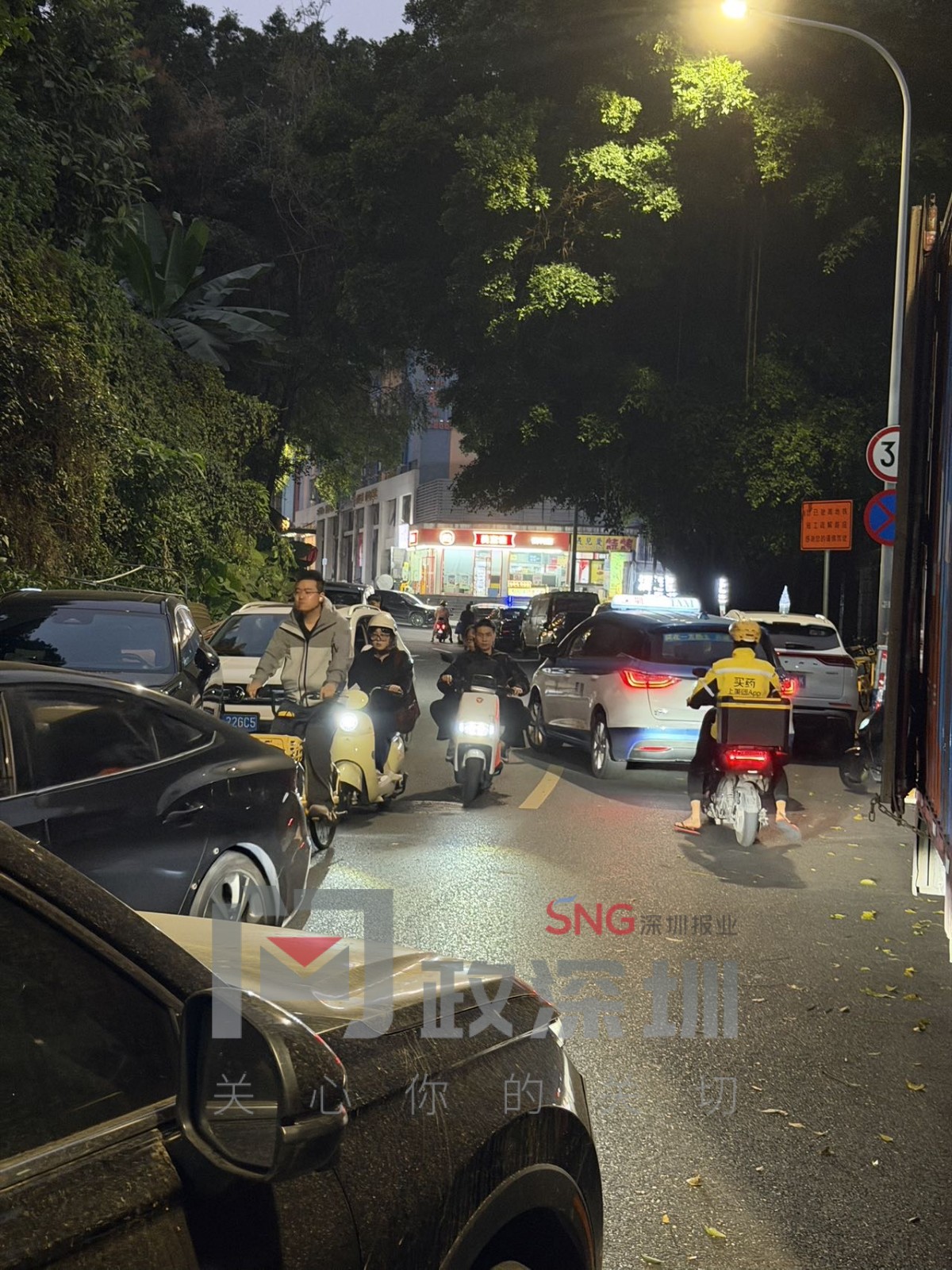 南山区西丽街道沙河路(bb 主题餐厅门口)车辆违停占道