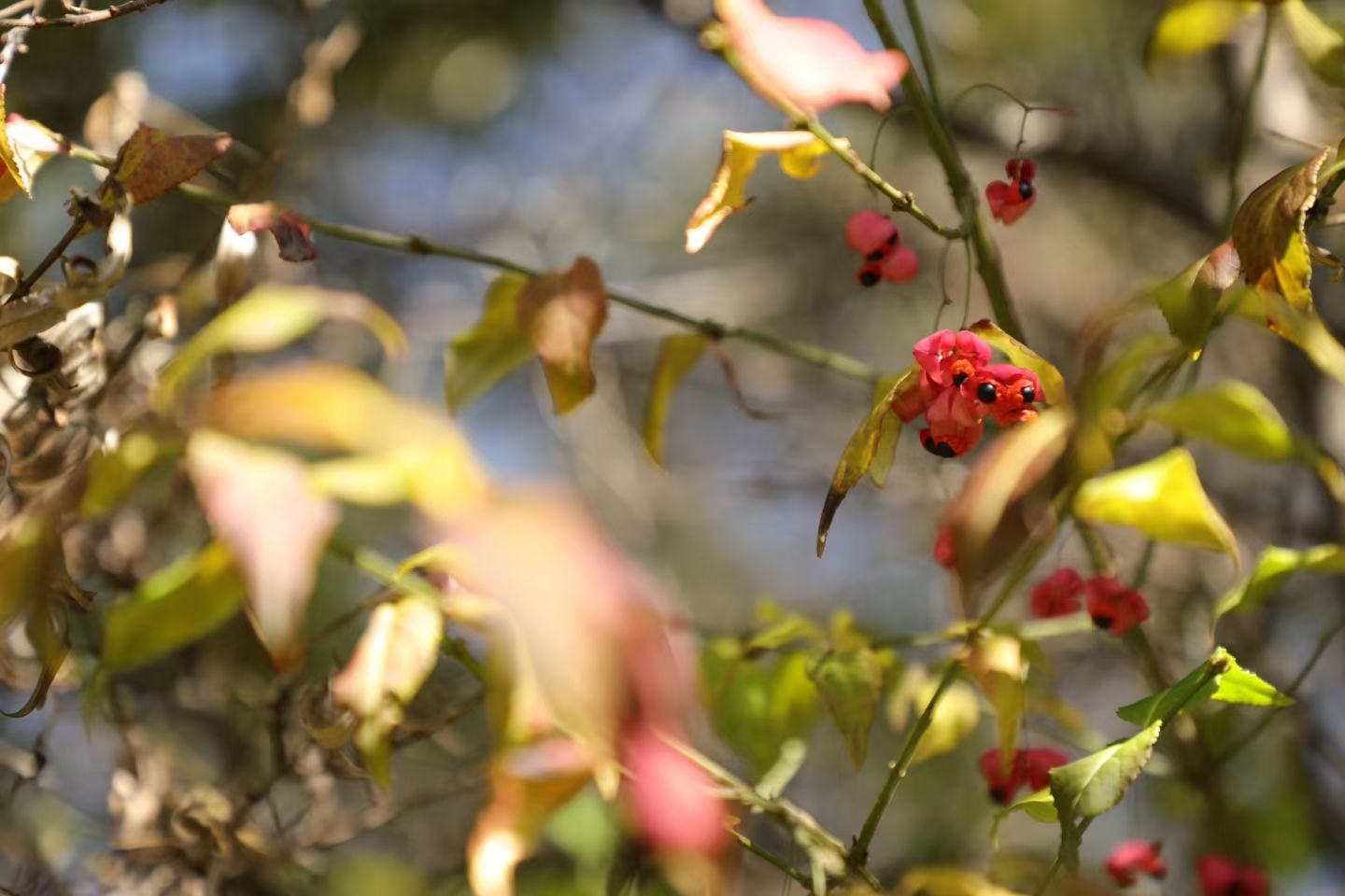 接骨木摇曳着高唱:“我一个酱紫的优才,不和你们争了,鸟儿们最爱我的果酱。”金银忍冬终于忍不住了:“阳光能穿过我的晶莹剔透,这才是秋色。”