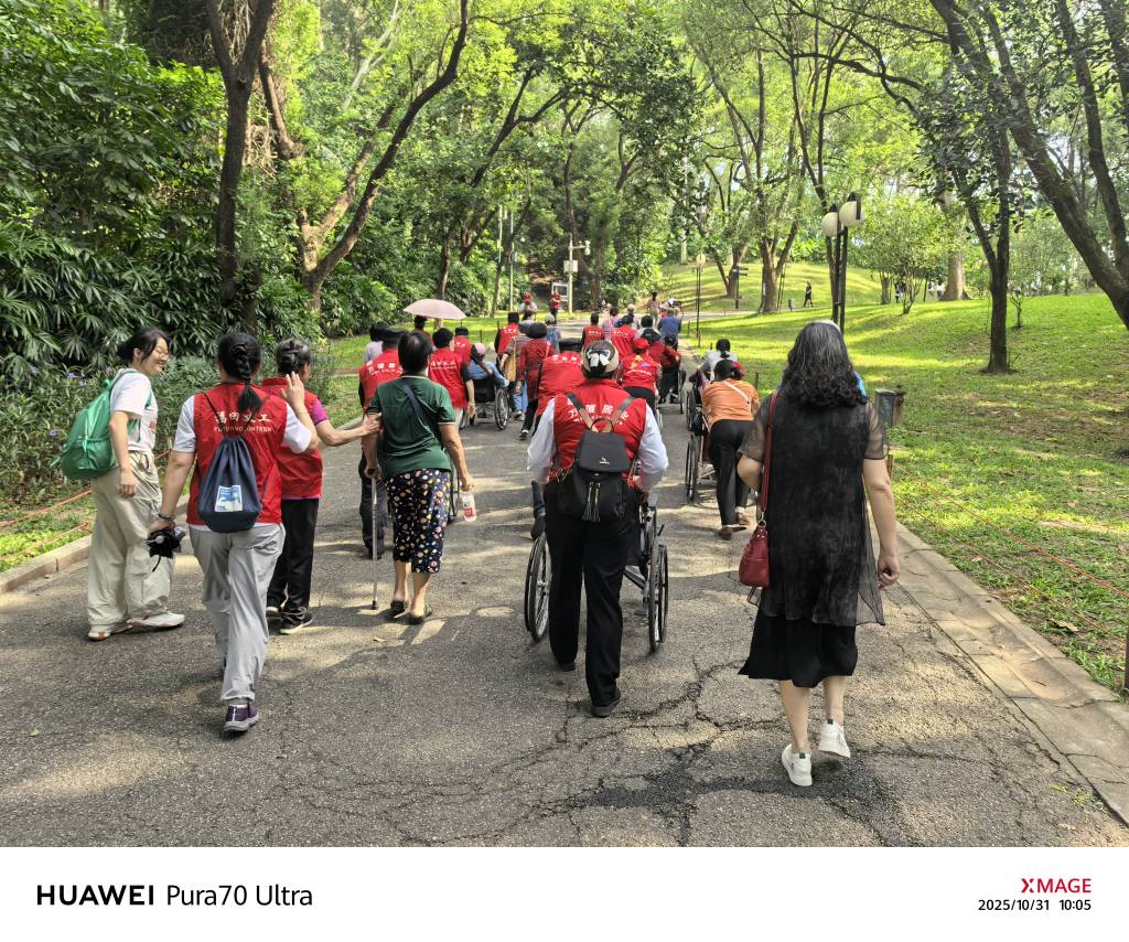 今天上午去莲花山公园登山,看到了志愿者拉着残疾人登山的温馨一幕,赶紧用手机抓拍下一组相片,展示深圳的温度,后来打听到是福田残联莲花北康复站组织的活动。