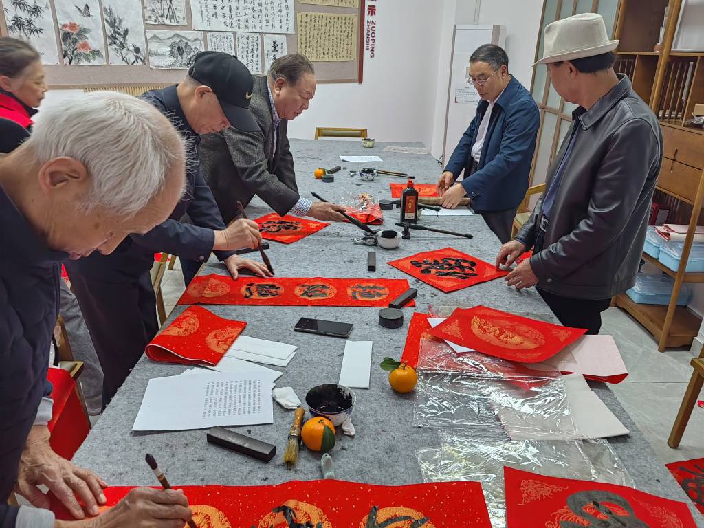 一月十四日下午,民治街道红山老协书画会,部分会员开始了今年笫一场写春联活动。