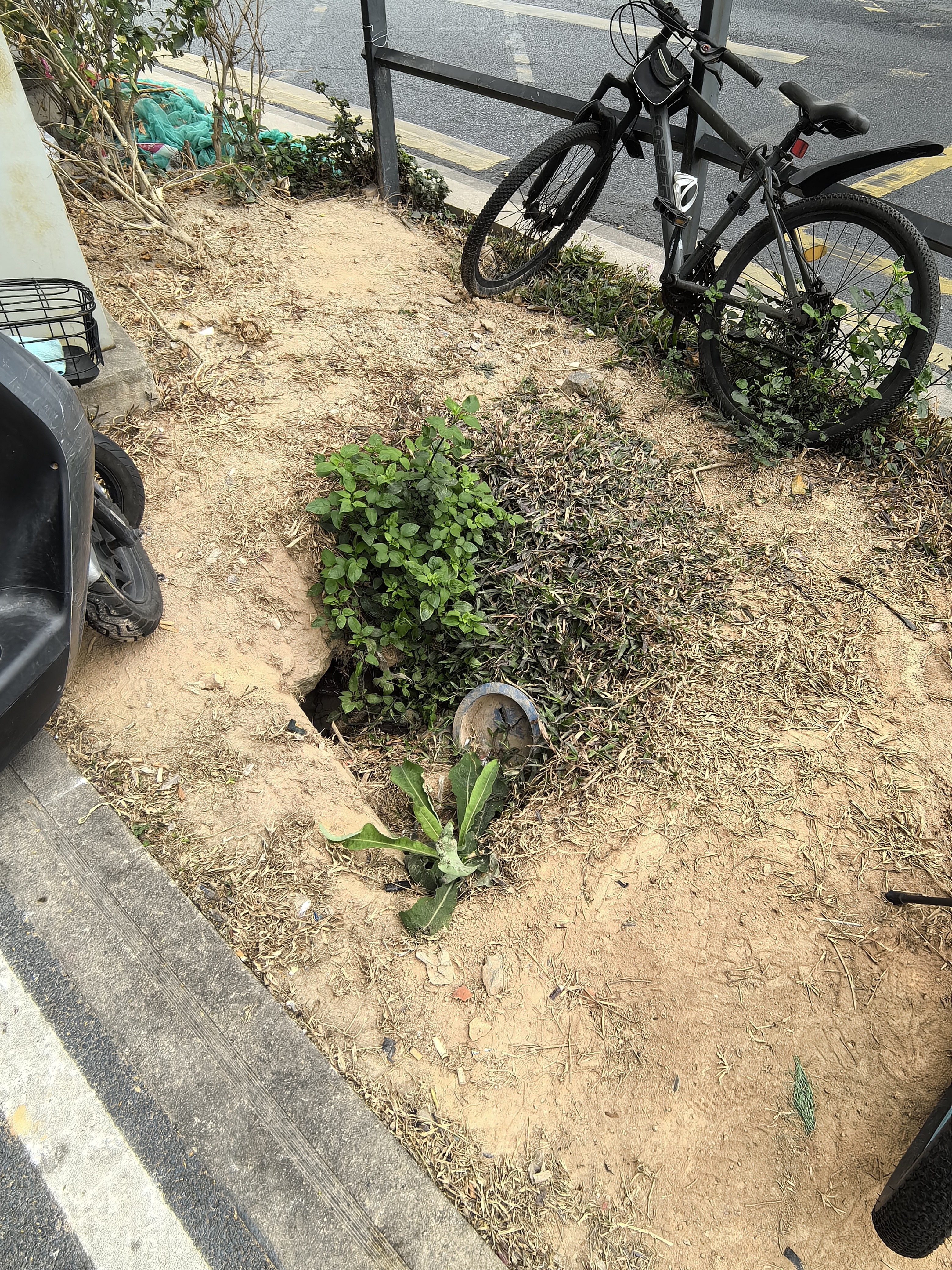 坂田街道办南坑社区,星河购物商场人行天桥南往北方向,在天桥底下,绿化带植被损坏,草皮裸露黄土,里面还有一个坑洞,应该是施工队施工完之后没有回填,也没有铺回草皮,造成坑洞裸露,并且行人可以从机动车道上穿越此处进入人行道,存在安全隐患,此绿化带黄土裸露,灰尘滚滚问题已持续几个月无人处理,请辖区街道办协调,让此处的市容市貌能够恢复原样。